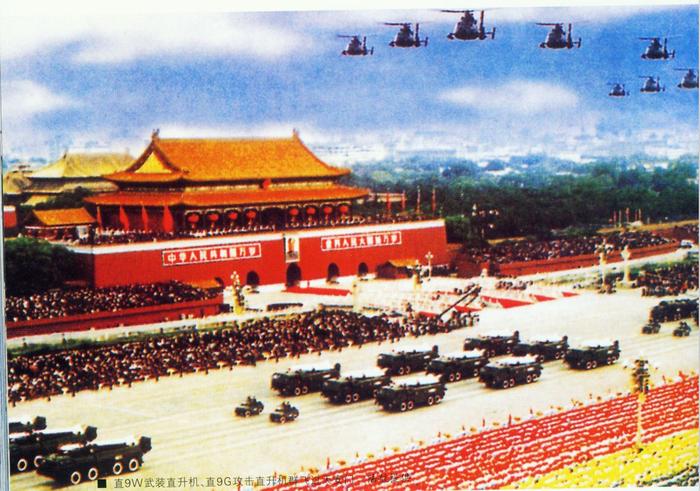 | 10月1日 | 歼击机、强击机、歼击轰炸机、轰炸机、加受油机、新型歼击机、武装直升机7个机种15种机型共132架飞机,组成10个梯队,飞过天安门上空,接受检阅。18枚国产“上游2”号导弹弹体随海军地面车辆方队通过天安门。 |